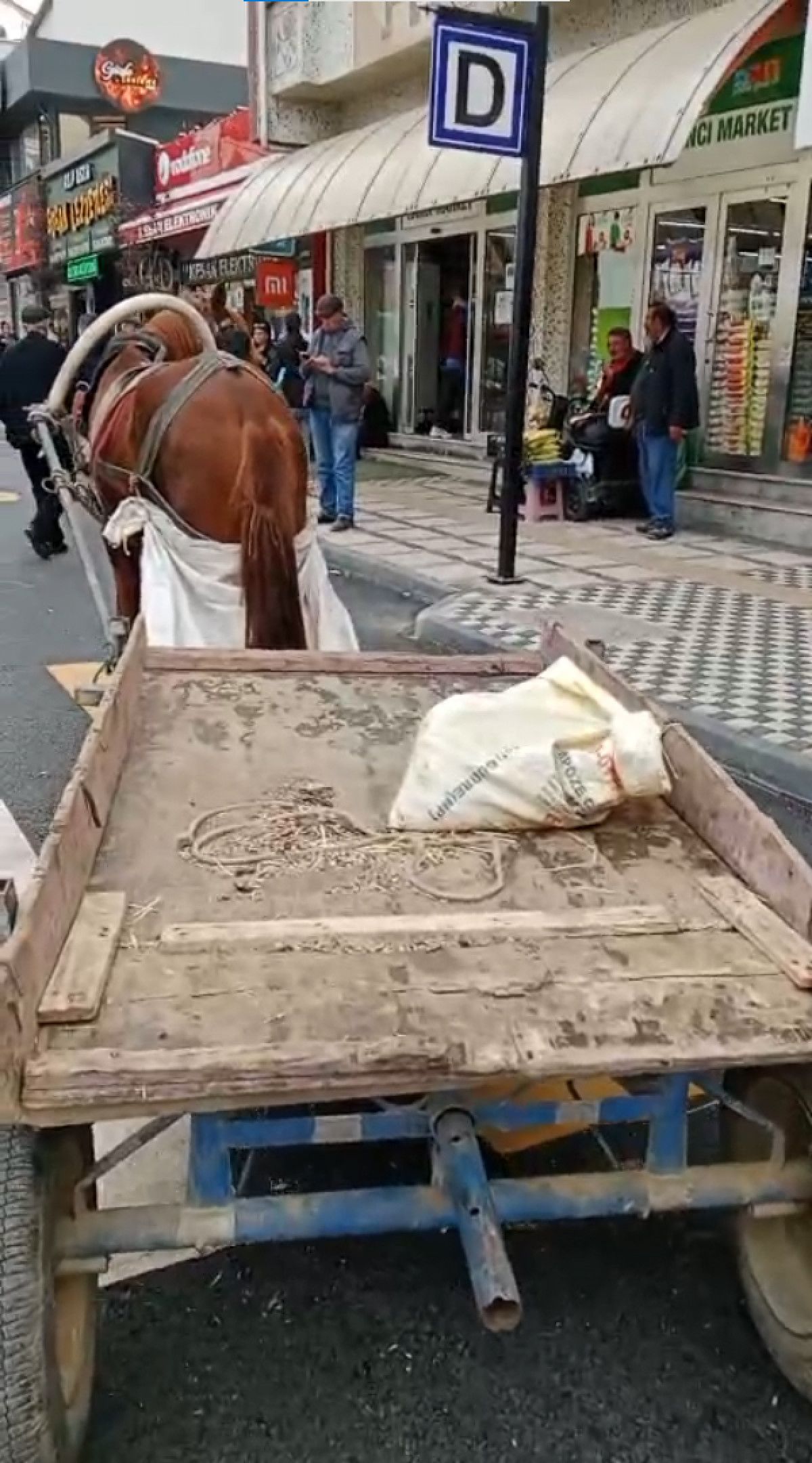 Edirne’nin Keşan ilçesinde bir kişi at arabasını yaya geçini işgal edecek şekilde bırakarak ayrıldı.