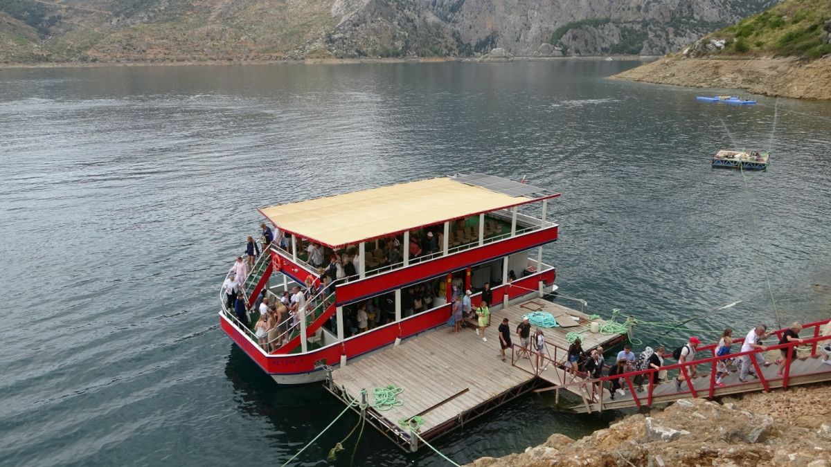 Antalya’nın Manavgat ilçesindeki Oymapınar Baraj Gölü’nde Alanya’dan tekne turuna katılan İrlandalı turist Antony Damien Smyth, kız arkadaşıyla birlikte bir koya geçti.
