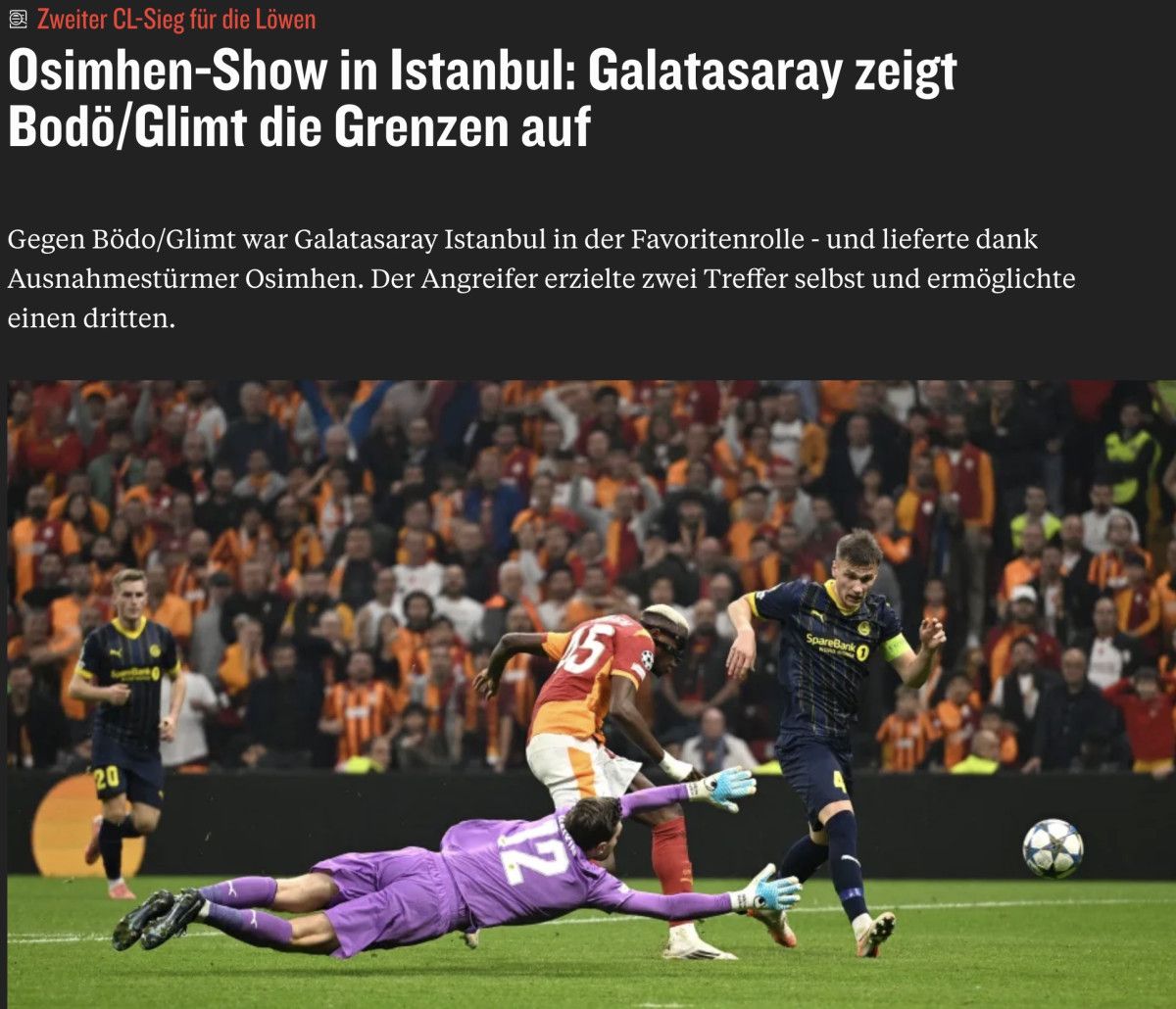 UEFA Şampiyonlar Ligi’nin 3’üncü haftasında Galatasaray sahasında Norveç ekibi Bodo/Glimt’i 3-1 mağlup etti. Sarı-kırmızılı ekibin galibiyeti Avrupa basınında da geniş yankı buldu.
