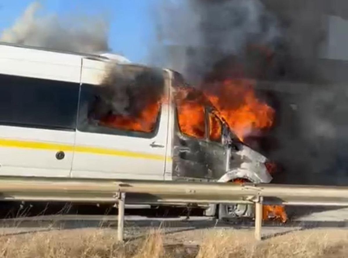 Bu sırada minibüsün motor kısmında da yangın çıktı.