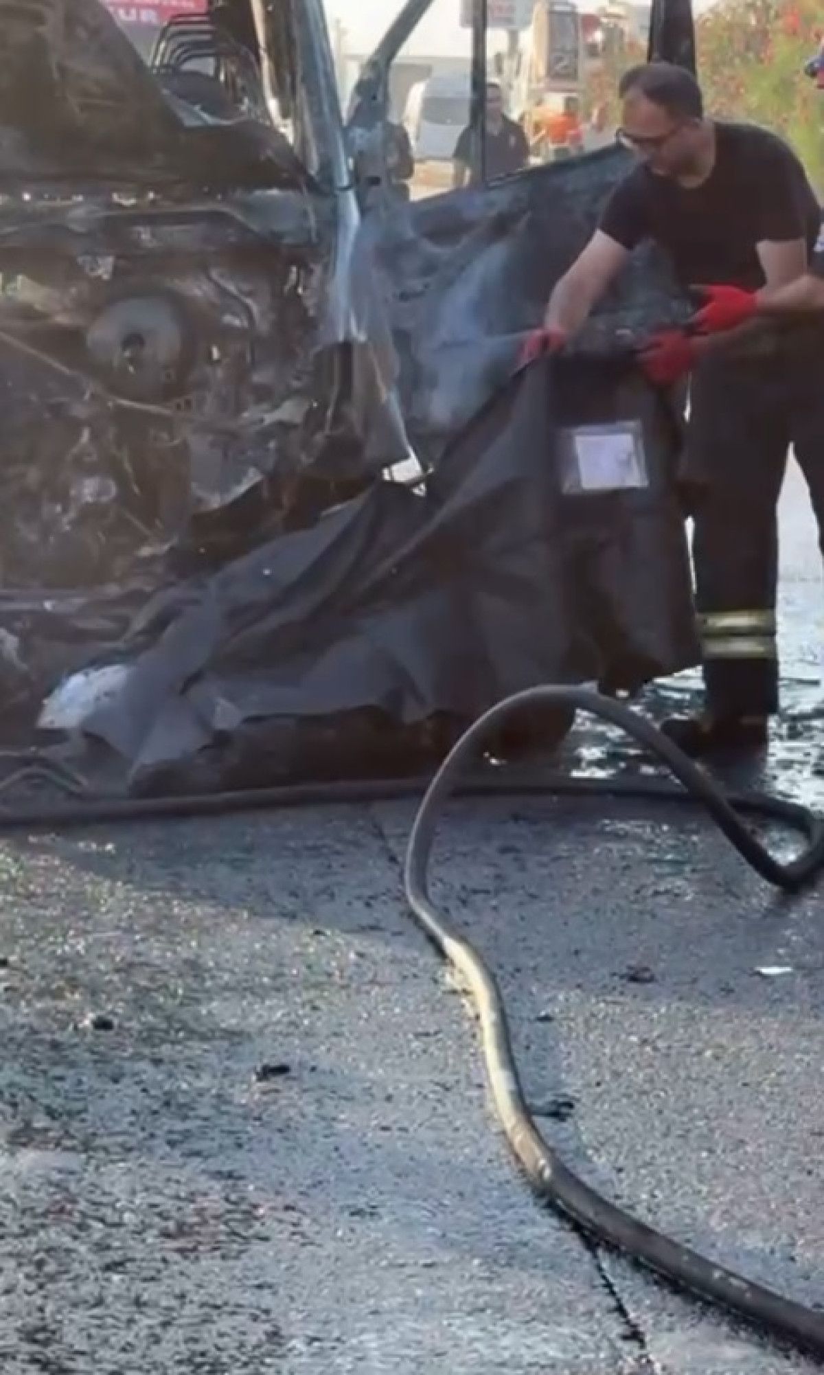 Adana’da minibüsle çarpışan motosikletin sürücüsü yanarak can verdi