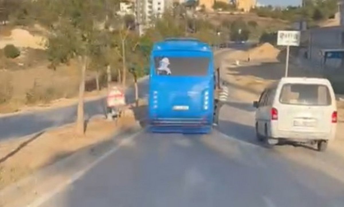 özel halk otobüsünün açık olan kapısına asılarak yolculuk yapan 2 kişi, cep telefonu kamerasına yansıdı. Zabıta ekipleri, aracın şoförünü 7 gün görevden uzaklaştırıp 2 bin 953 TL ceza kesti.