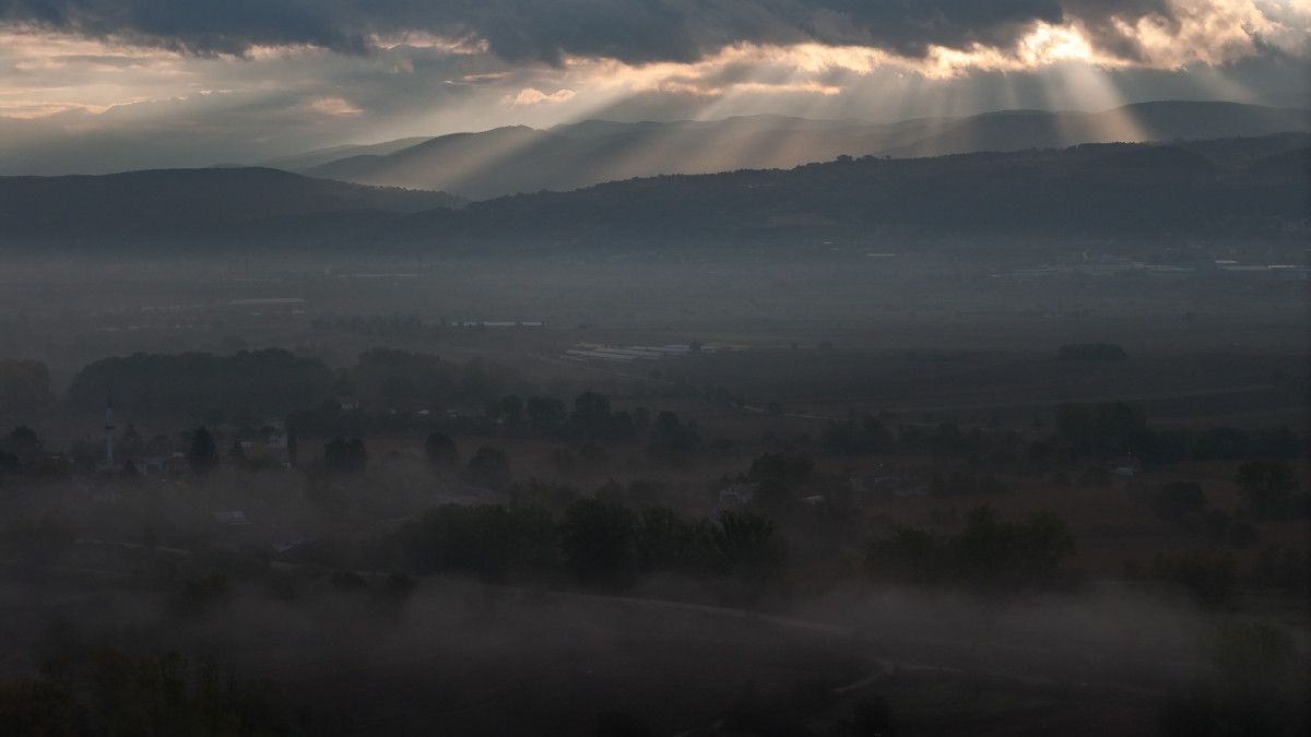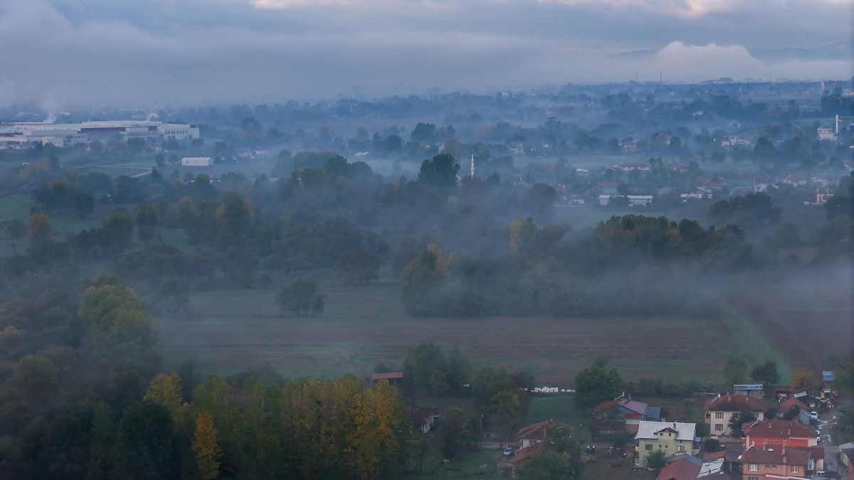 Görüntülerde ağaçlar, tepeler ve evler sisin arasında gizlenerek görsel bir şölen oluşturdu.