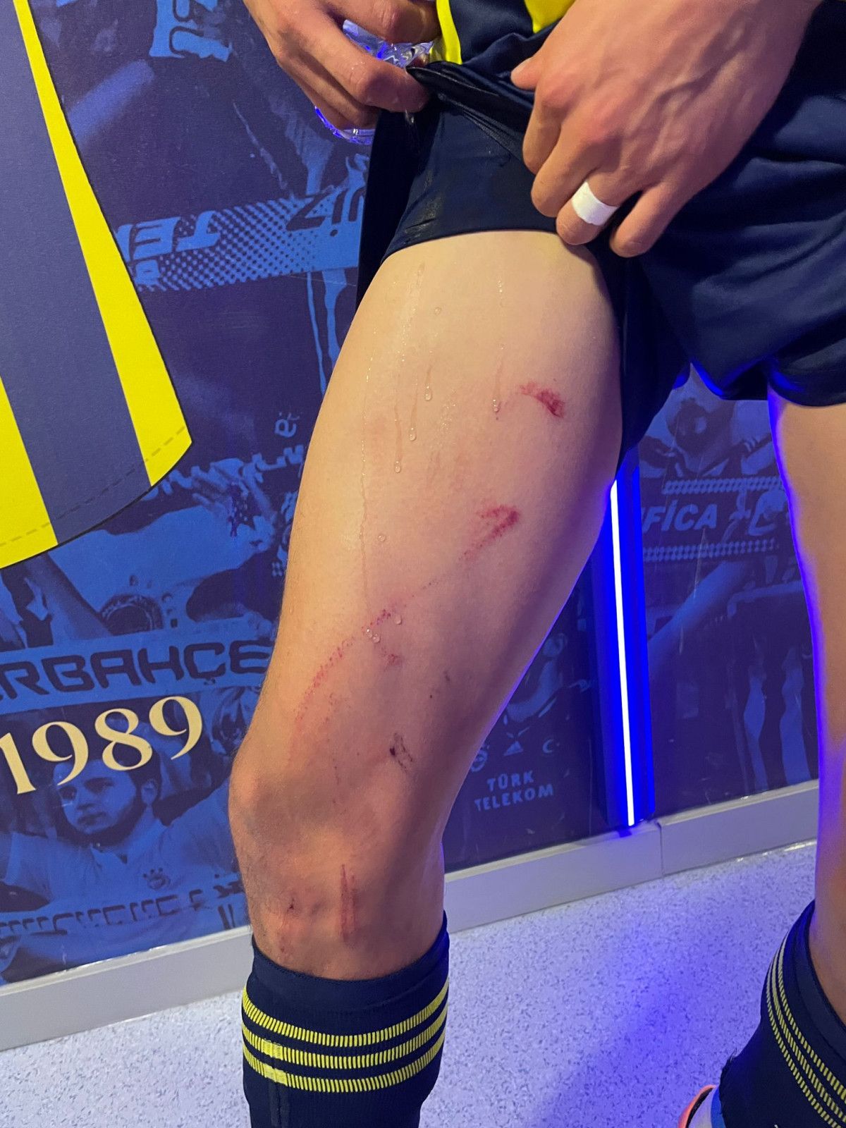 Maç sonrası ortaya çıkan görüntülerde, Edson Alvarez’in bacaklarının yaralı ve kanlar içinde olduğu görüldü.