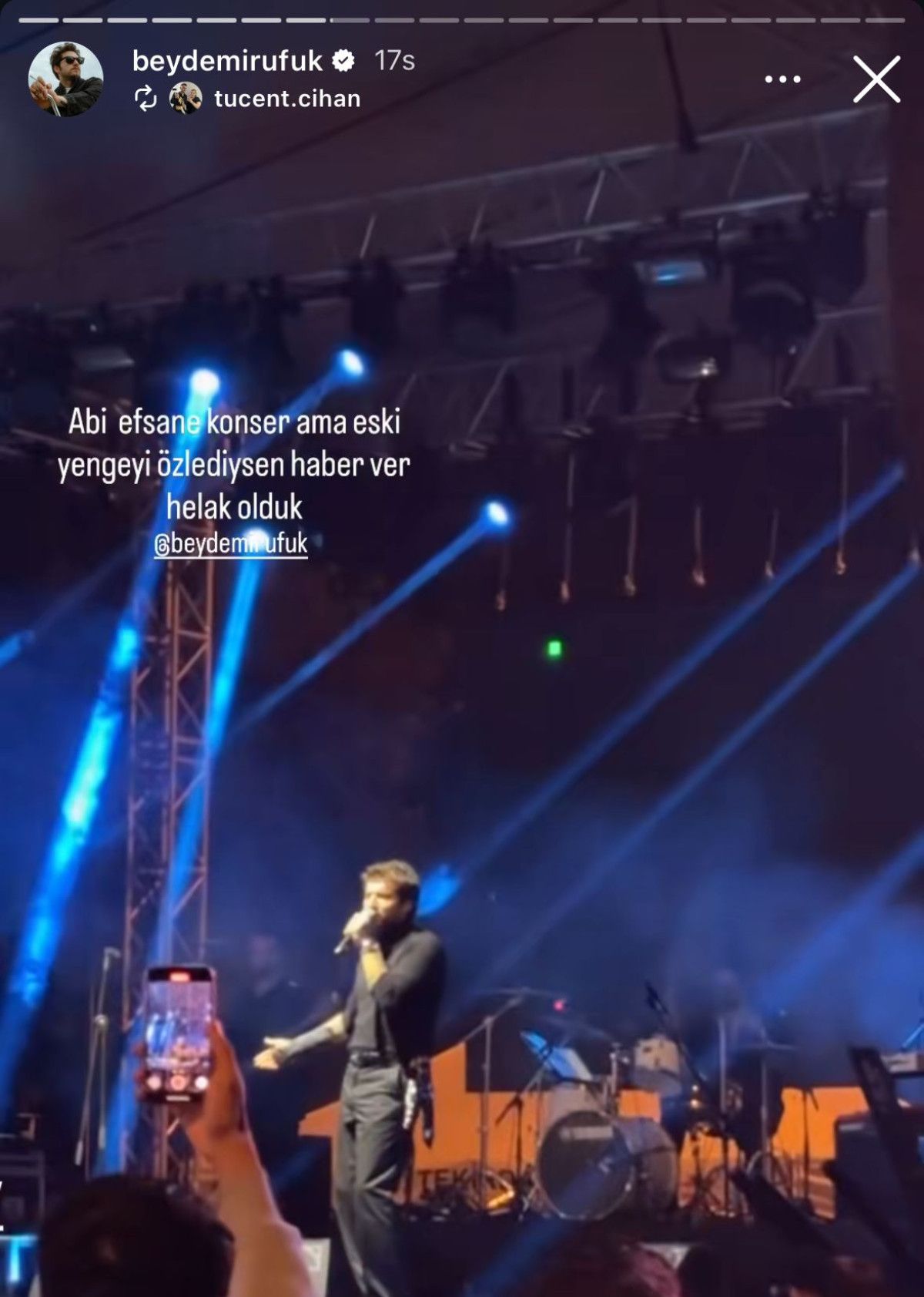 Tekirdağ’da konser veren ve bir takipçisinin ‘Ağabey efsane konser ama eski yengeyi özlediysen haber ver, helak olduk’ notunu yazdığı hikayeyi Instagram hesabından paylaşan ünlü şarkıcıya çok sayıda yorum geldi.