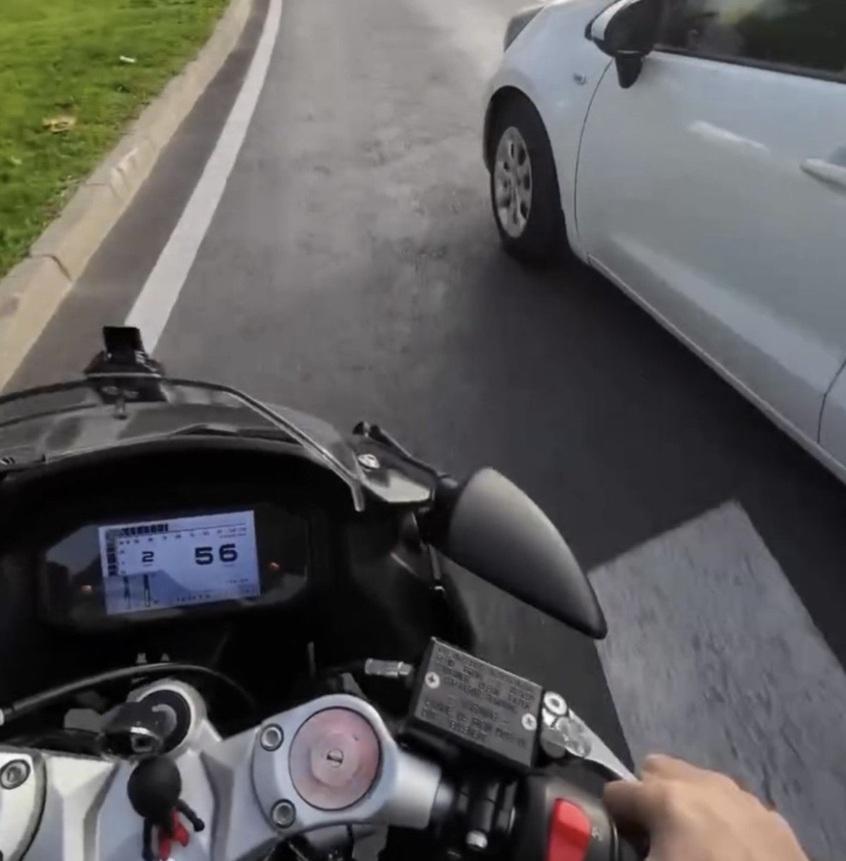 O anlar kameraya yansırken, motosikletli o anları, “Hak edene, hak ettiğini vereceksin” notuyla paylaştı.