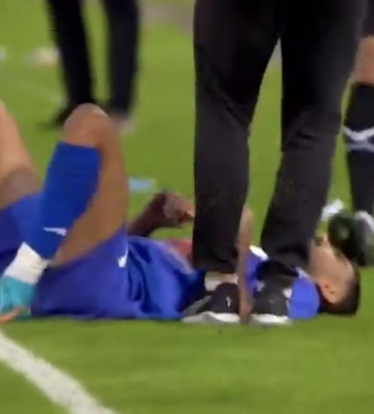 Boynunun üzerine düşen ve bir süre boyunca yerde kalan genç oyuncu, izleyicileri ve sahadaki futbolcuları korkuttu.