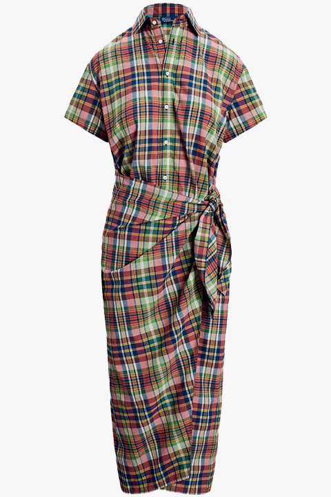 Kırmızı yeşil ekoseli midi gömlek elbise