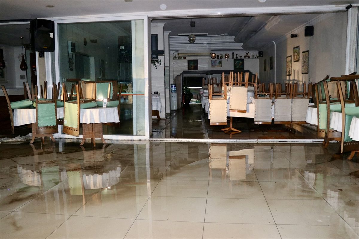 Cadde ve sokaklar göle dönerken, bazı ev ve iş yerlerini su bastı.