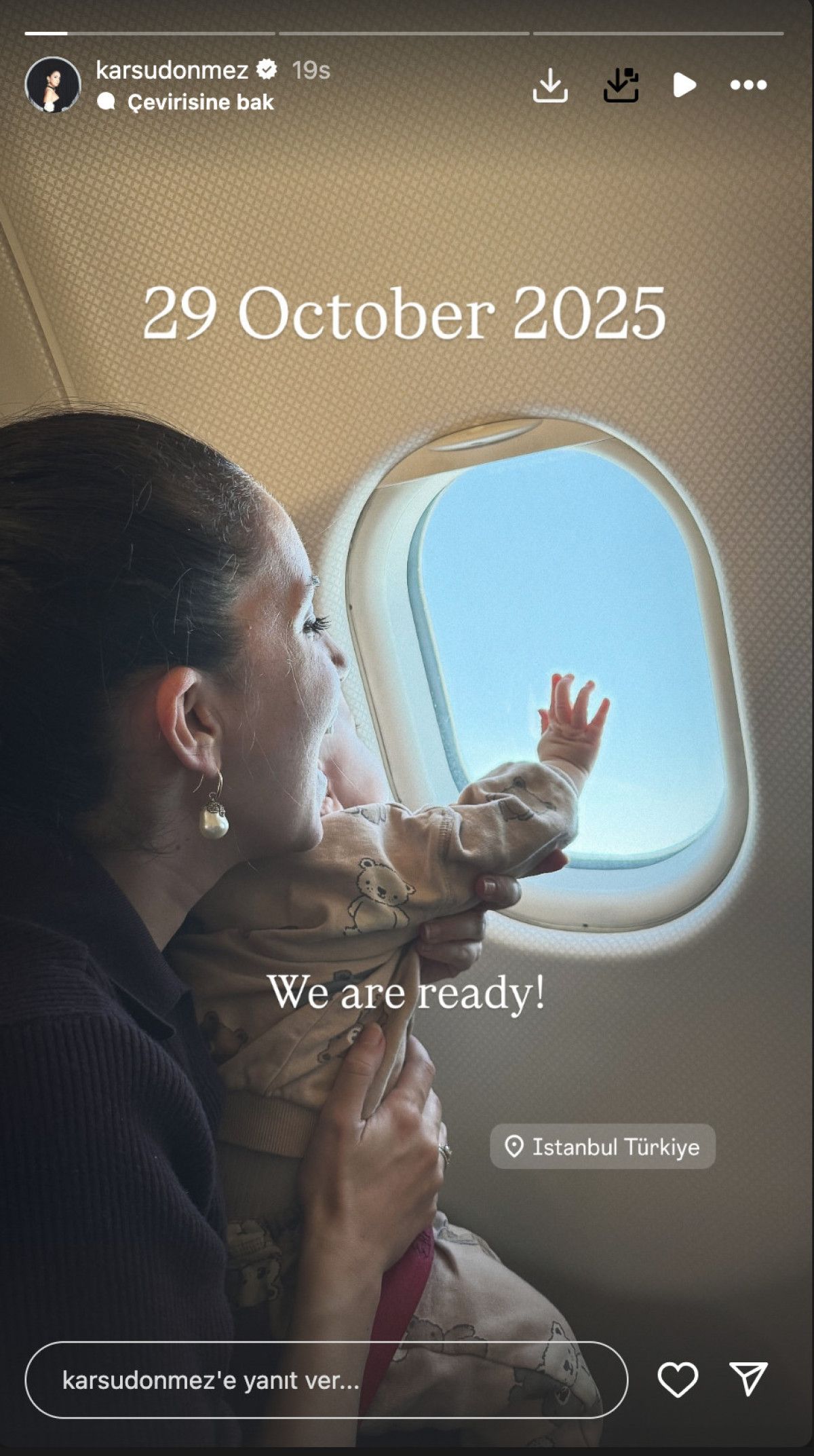 Karsu bebeğiyle Türkiye’ye geldi! Uçaktan paylaşım var