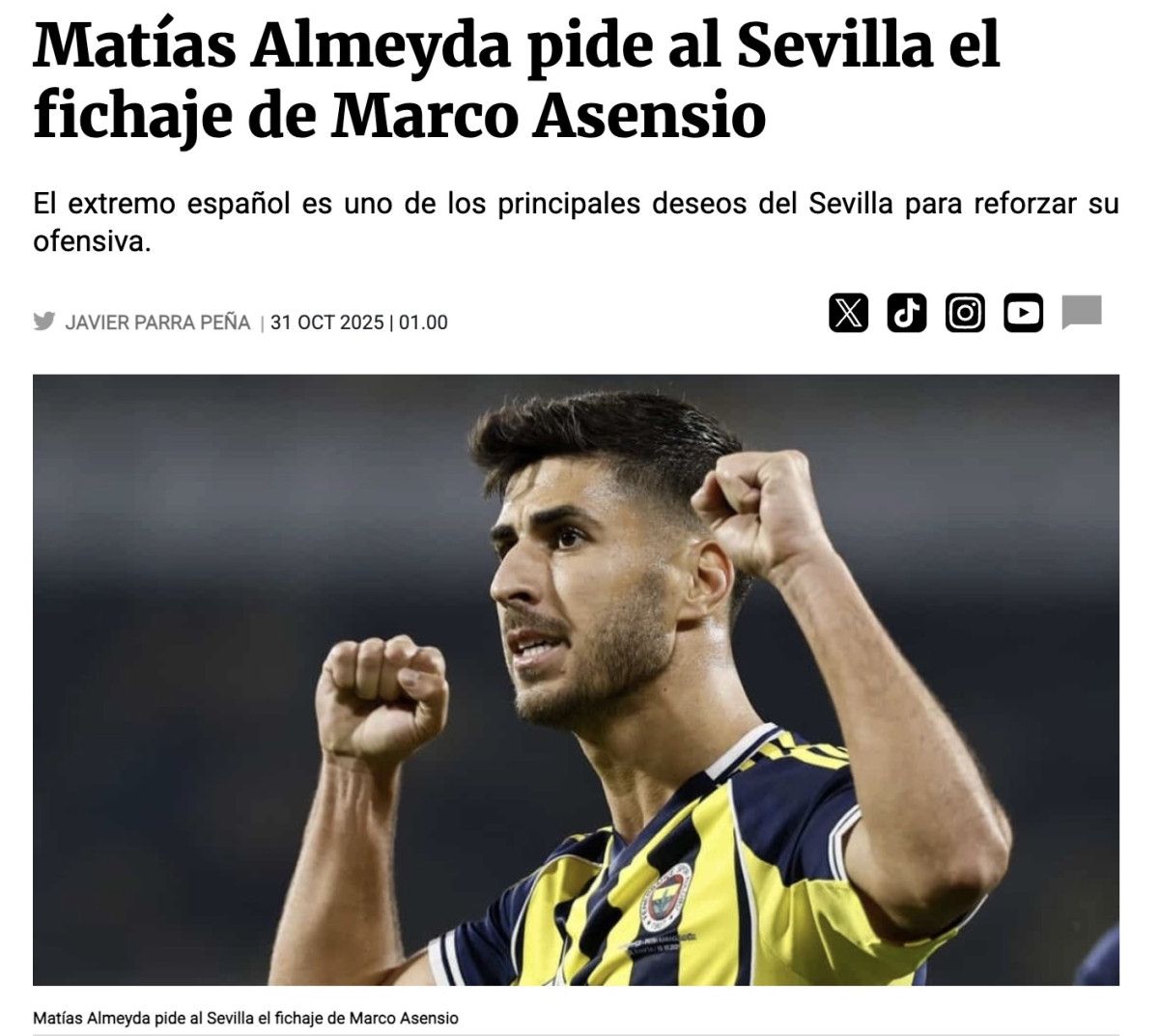 Sevilla yetkililerinin Fenerbahçe Yönetimi ile görüşmlere başlaması ve Asensio’ya sözleşme sunmasının beklendiği kaydedildi.