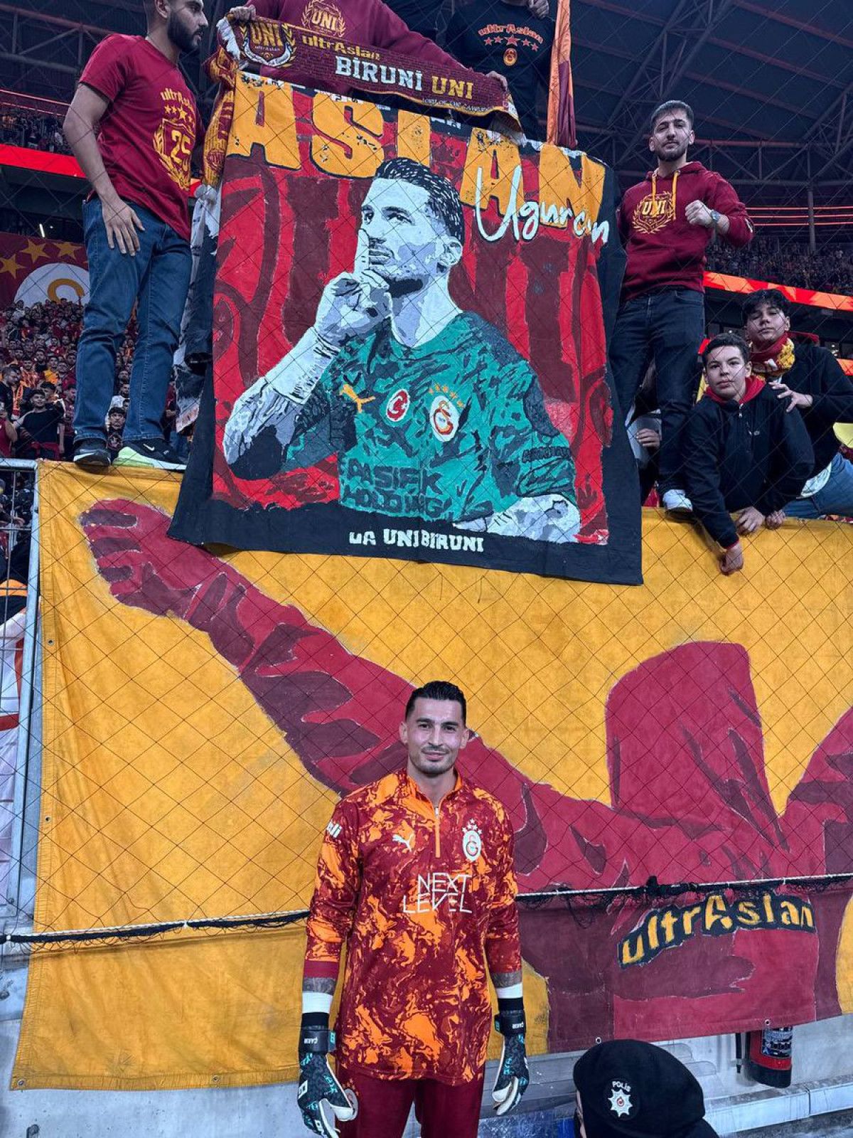 Bu arada Uğurcan Çakır, UltrAslan tribünü önüne giderek taraftar grubuyla fotoğraf çektirdi.