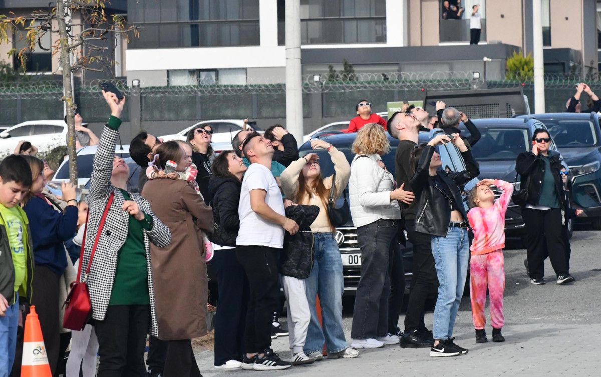 Özellikle çocuklar ve gençlerin heyecanı dikkat çekerken, birçok vatandaş telefonlarıyla bu anları kaydetti.