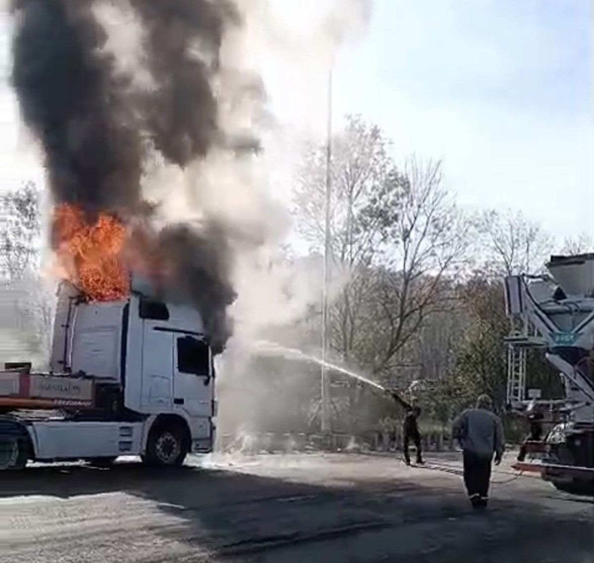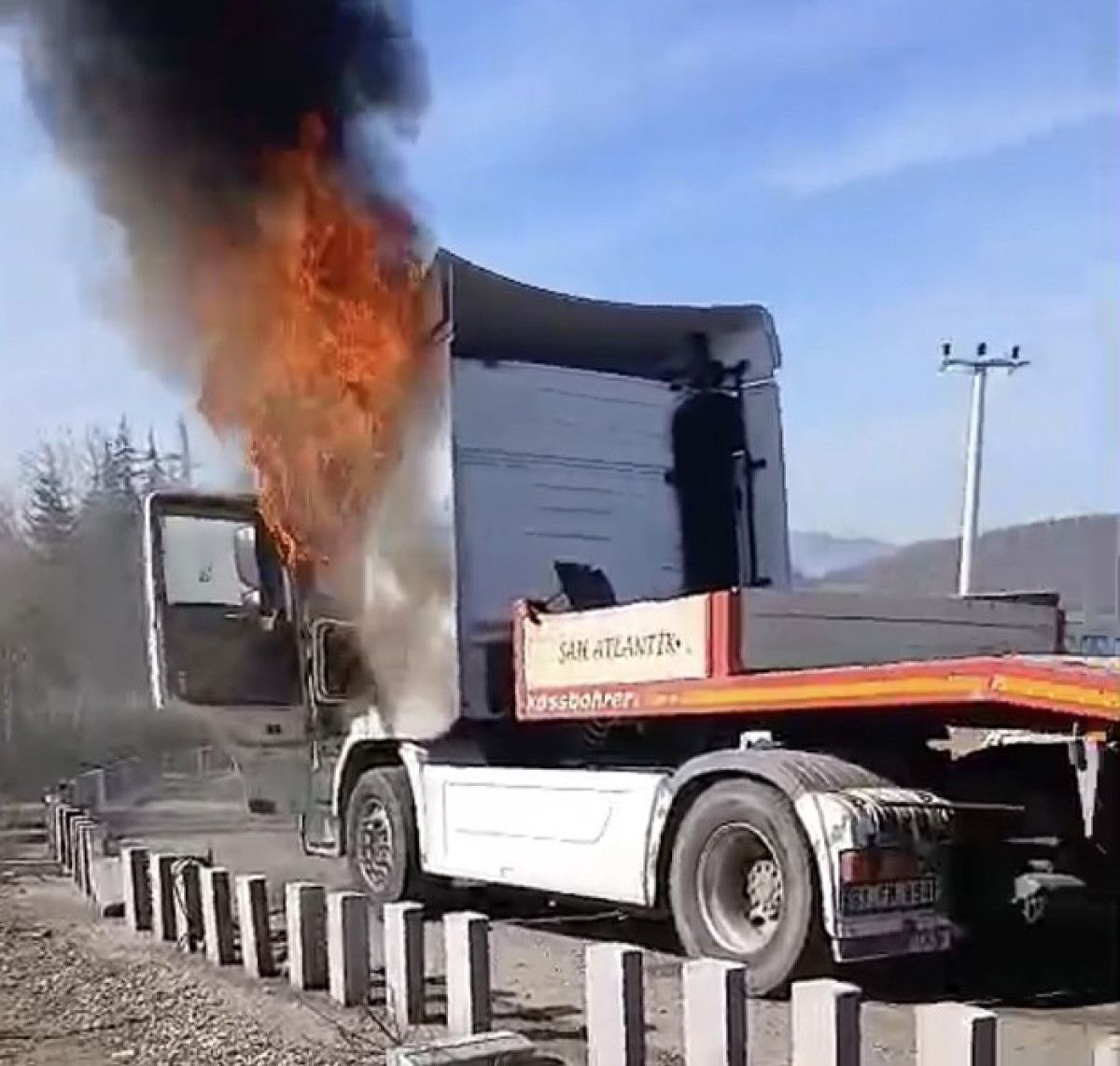 Bu olayın ardından yarım saat sonra aynı bölgede, bu kez 81 FM 854 plakalı kamyonun kupa kısmında yangın çıktı.