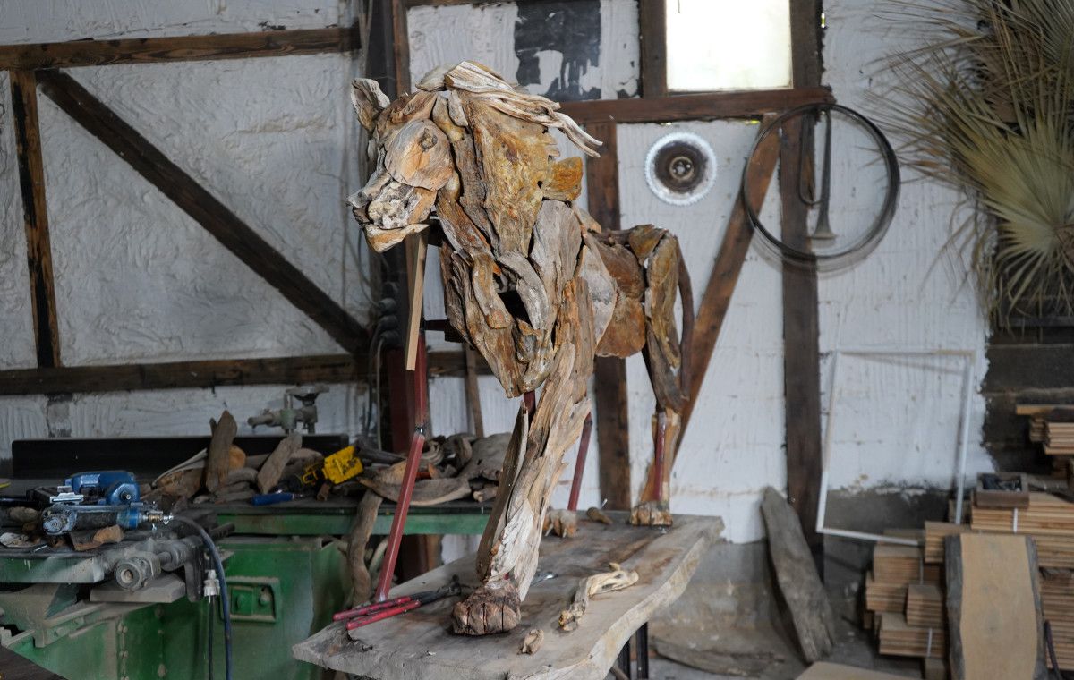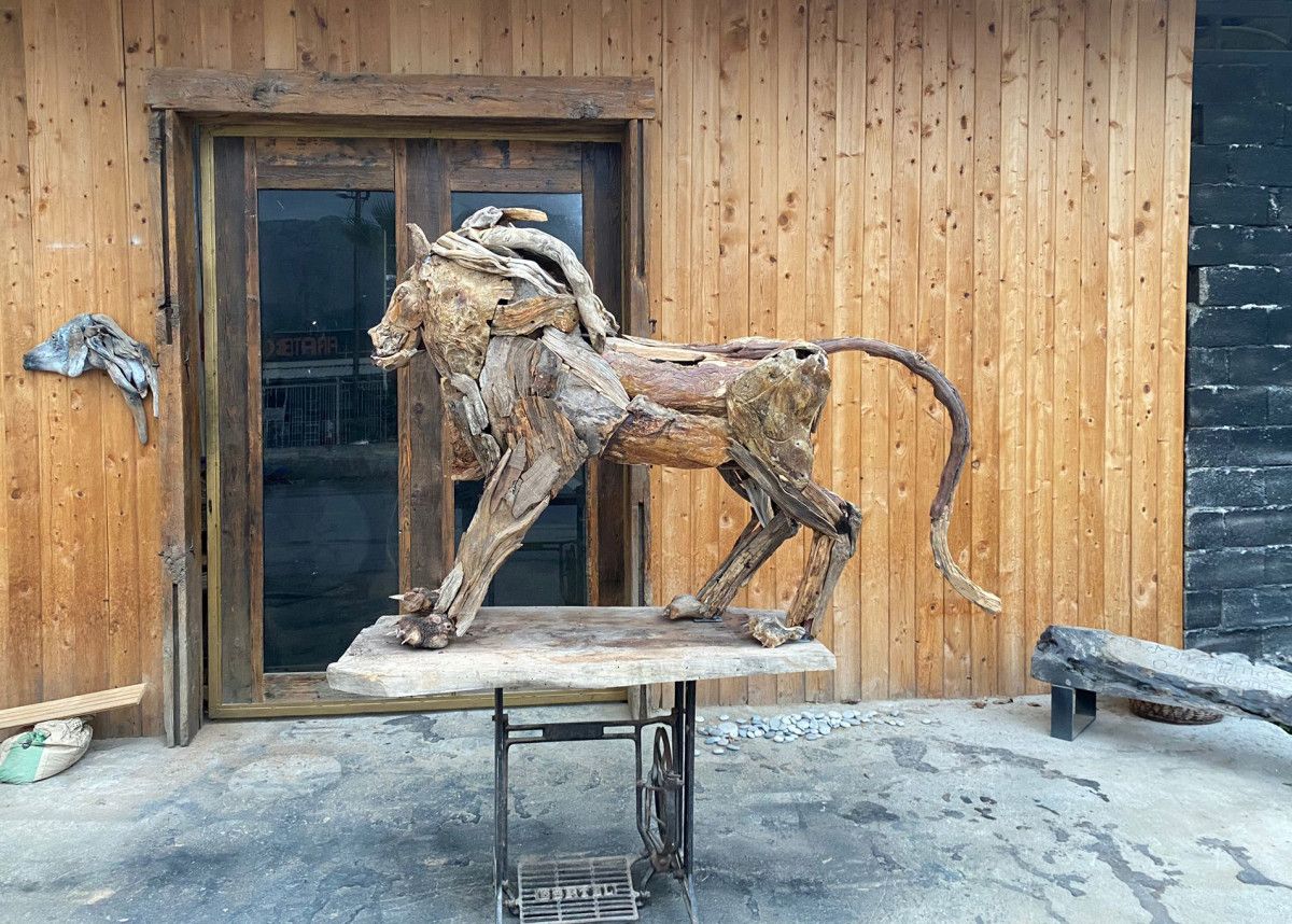 Driftwood (geri dönüşüm) sanatçısı Osman Dönmez, doğadan topladığı ağaç parçalarıyla Manavgat’ta kafesinden kaçtıktan sonra bir kişiyi yaralayan ve vurularak öldürülen aslan Zeus’un heykelini yaptı.