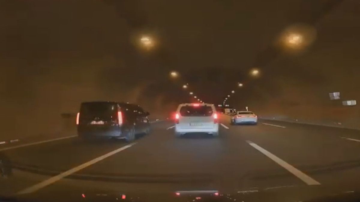 İstanbul’un Çekmeköy ilçesi Kuzey Marmara Otoyolu Çamlık Tüneli mevkiinde hafif ticari aracıyla makas atarak ilerleyen sürücünün trafik güvenliğini tehlikeye soktuğu anları diğer sürücüler cep telefonuyla kayda aldı.