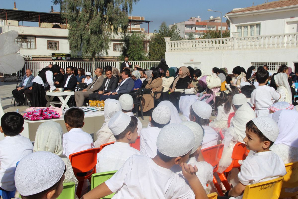Şırnak’ın Cizre lçesinde Nuh’un Gemisi 4-6 Yaş Kur’an Kursu öğrencileri, Hz. Nuh Cami avlusunda düzenlenen ‘Bed-i Besmele’ programıyla eğitim hayatına ilk adımlarını attı.