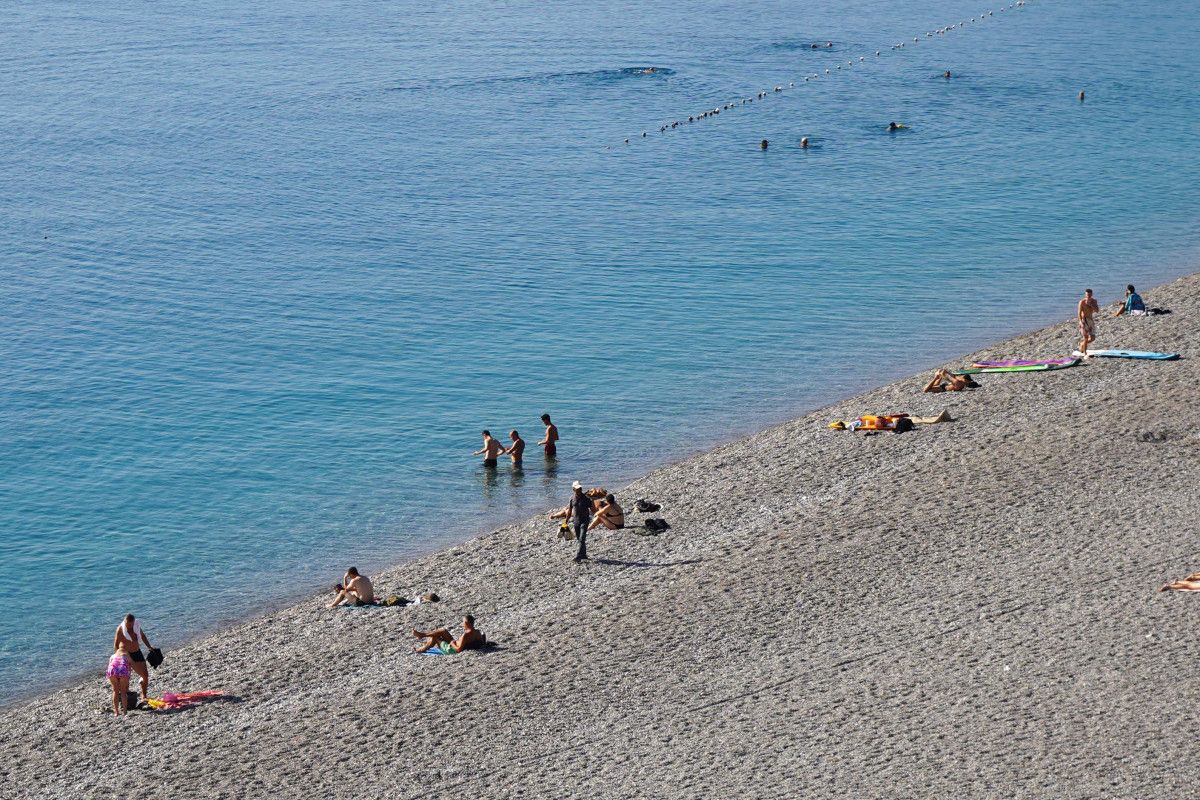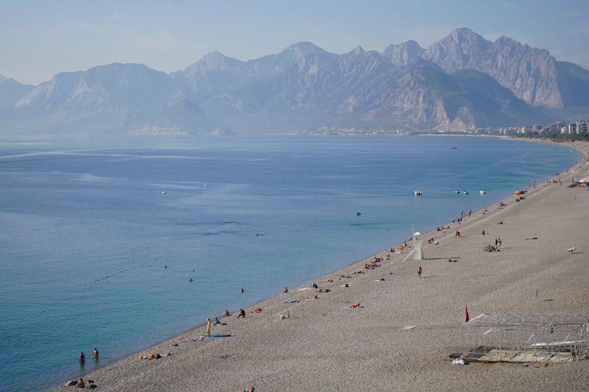 Antalya’da havanın 27, deniz suyu sıcaklığının 24 derece olduğu kentte, yerli ve yabancı turistler Konyaaltı Sahili’nde güneşlenip denize girerek, güneşli havanın keyfini çıkarttı.