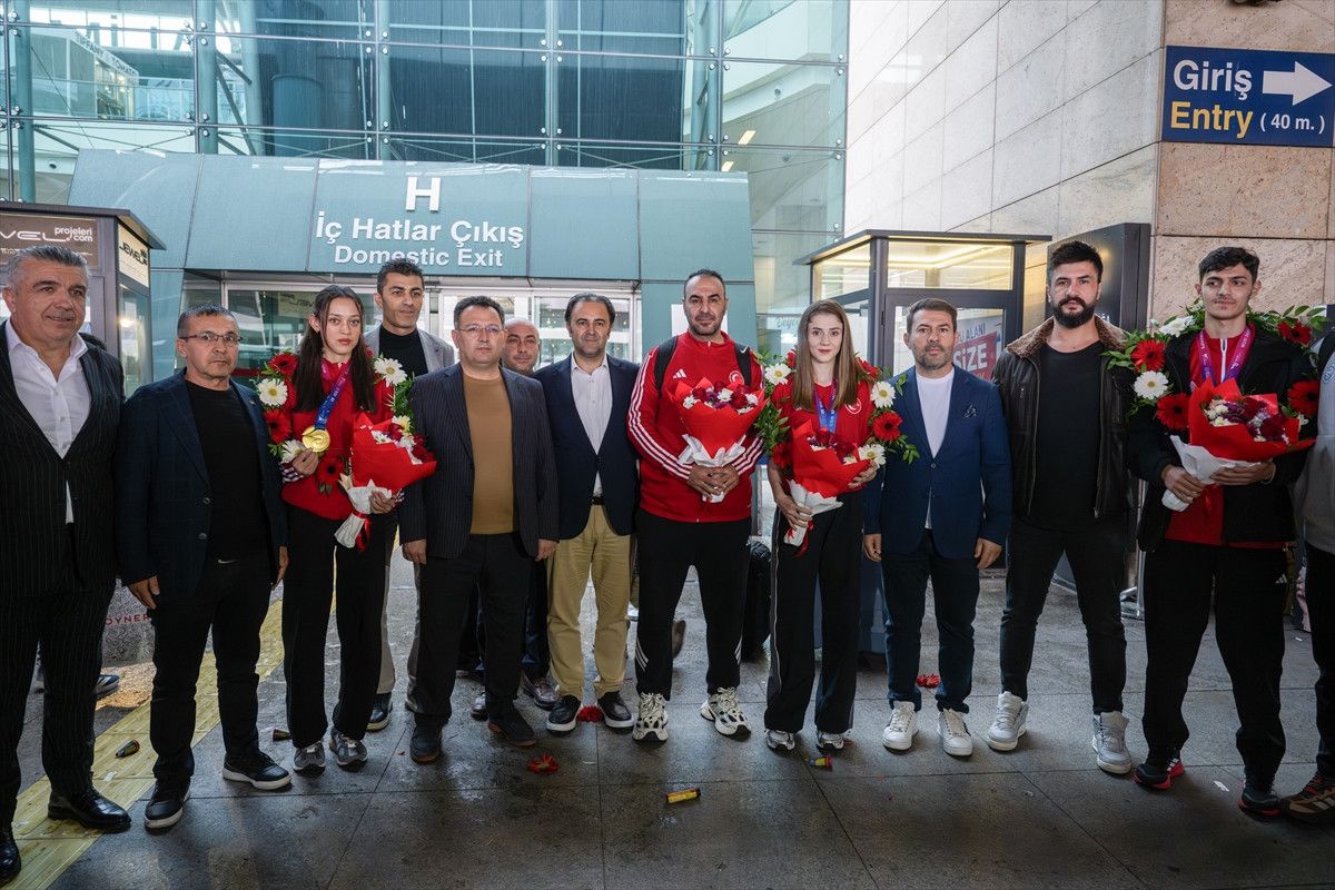 Milli sporcuları, Esenboğa Havalimanı’nda federasyon ve ASKİ Spor Kulübü yetkilileri ile yakınları çiçeklerle karşıladı.