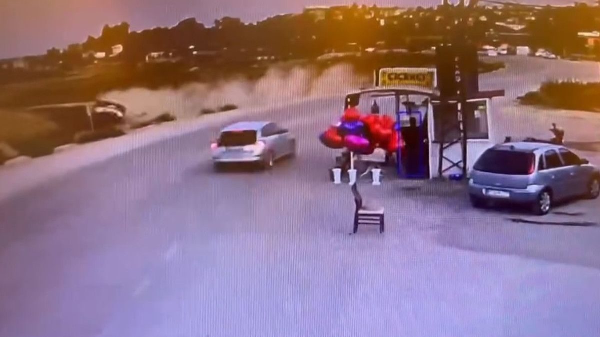 Adana’da virajı alamayan otomobilin şarampole düşüp taklalar attığı anlar güvenlik kamerasına yansıdı.
