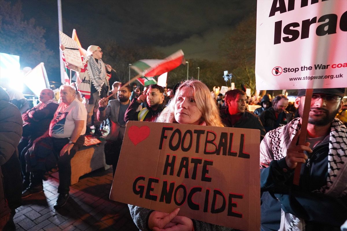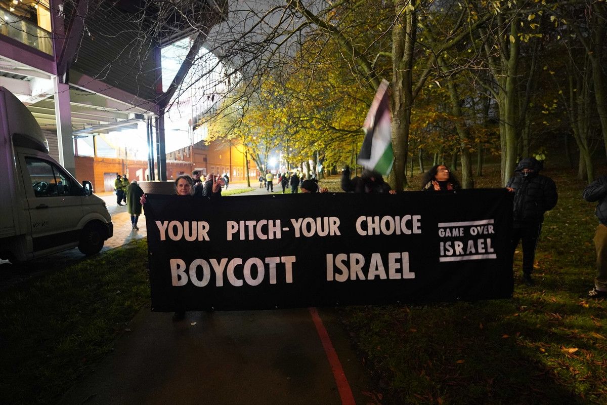 UEFA Avrupa Ligi’ndeki Aston Villa-Maccabi Tel Aviv maçı öncesinde İsrail’in uluslararası futboldan men edilmesini isteyen binlerce kişi İngiltere’nin Birmingham kentinde protesto gösterisi düzenledi.