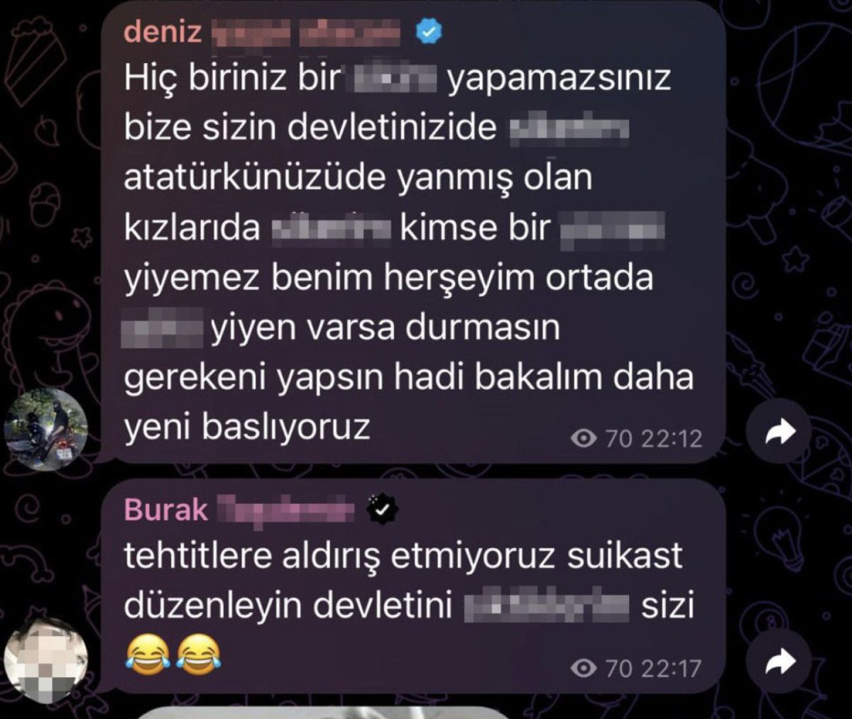TELEGRAM GRUBUNDA YANGINDA ÖLENLERE KÜFÜR ETTİLER