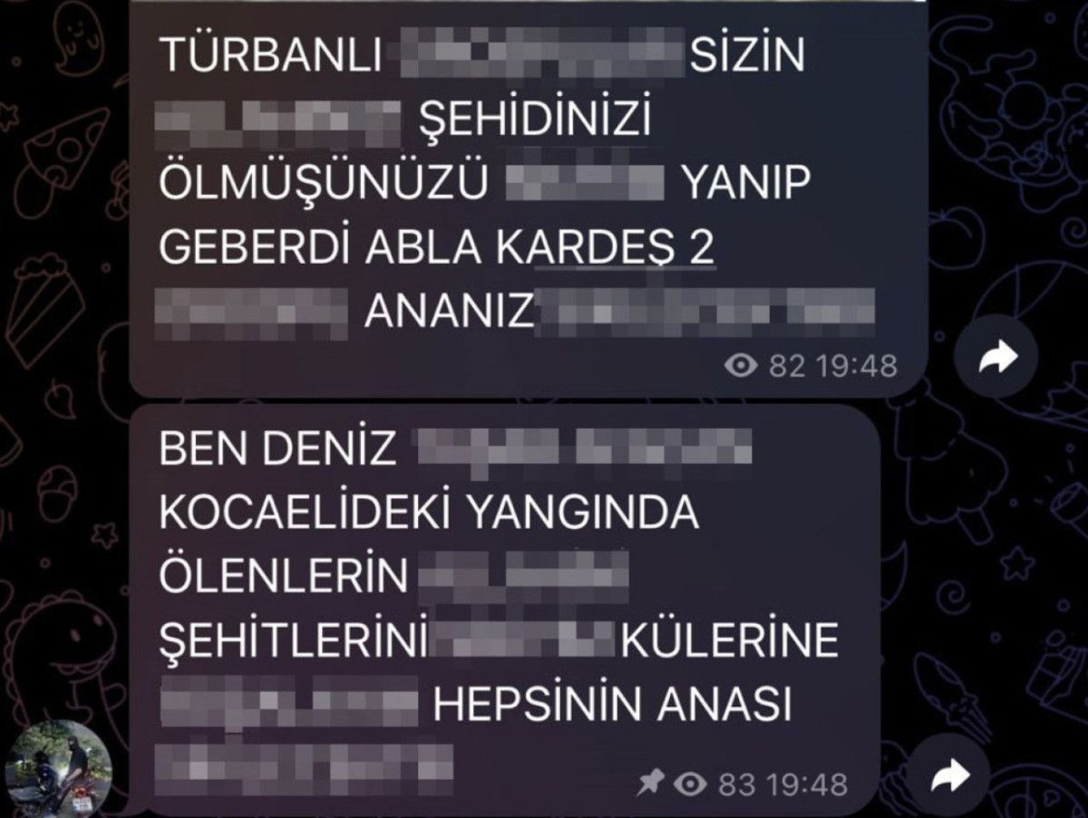 Olayın ardından “Kocaeli İnfaz Yayın” isimli bir Telegram sayfasında, yangında ölen vatandaşlara yönelik küfürlü ve hakaret içerikli paylaşımlar yapıldığı ortaya çıktı.