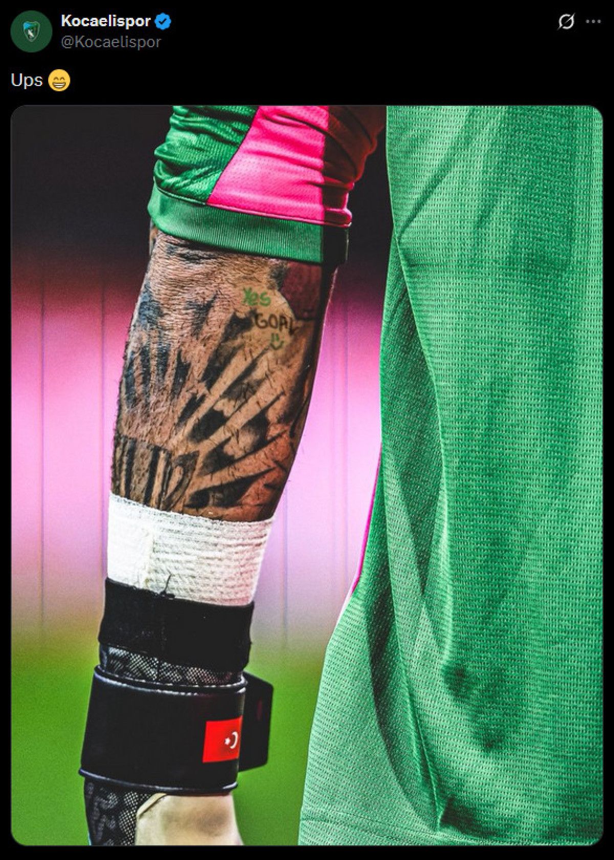 Yeşil-siyahlı kulüp, milli kalecinin kolunda yer alan ‘No Goal’ dövmesinin görüldüğü fotoğrafı sosyal medyada paylaşarak ‘Ups’ notunu ekledi.
