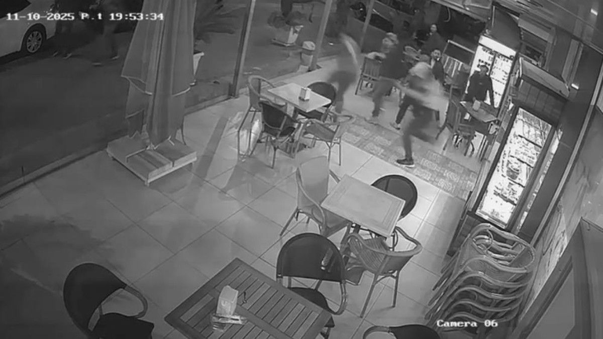 İş yerinin güvenlik kameraları tarafından kaydedilen görüntülerde saldırganın elinde bıçakla içeri girmesi, müşterilerin kaçışması ve sandalyelerle kendilerini savunmaya çalışmaları yer aldı.