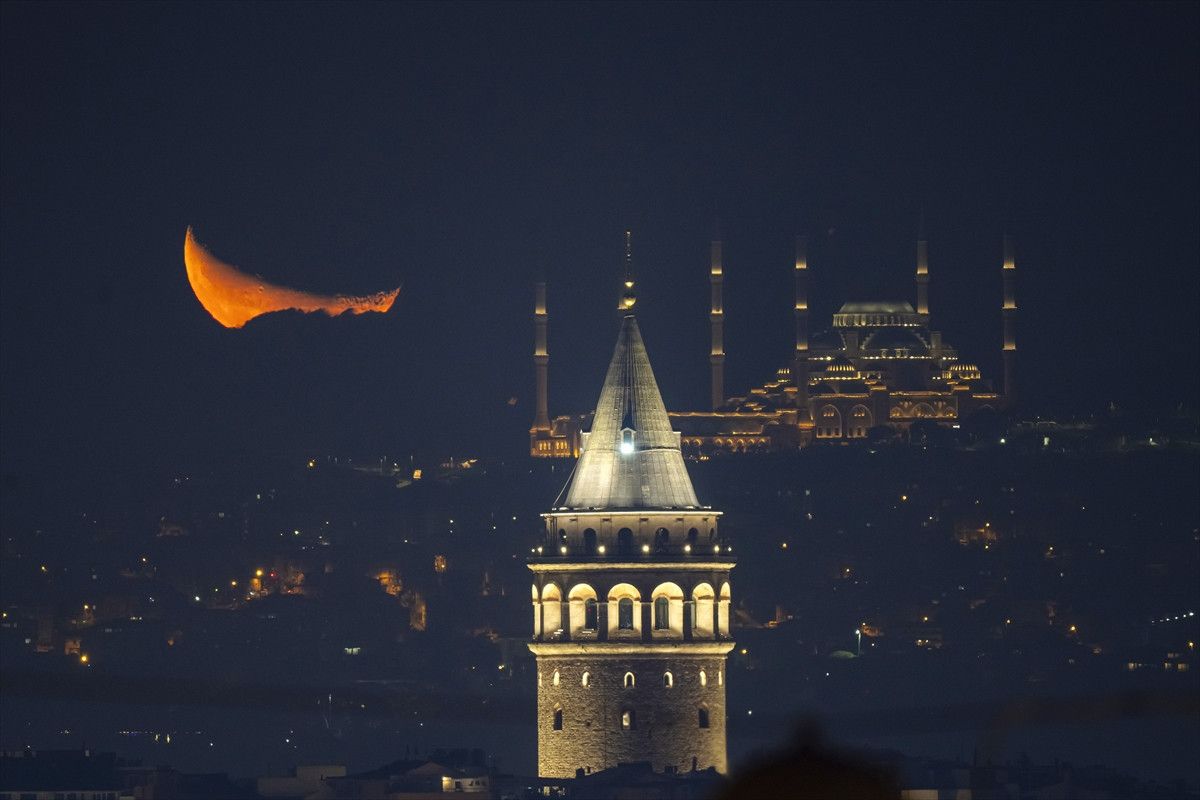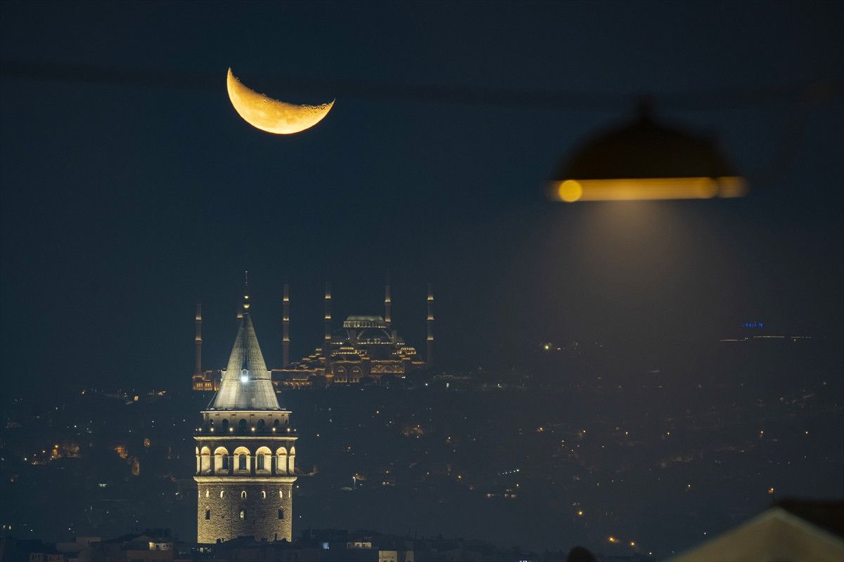 Kentte akşam saatlerinde gökyüzünde beliren hilal, tarihi Galata Kulesi ile birlikte görüntülendi. Ortaya çıkan manzara, izleyenleri hayran bıraktı.